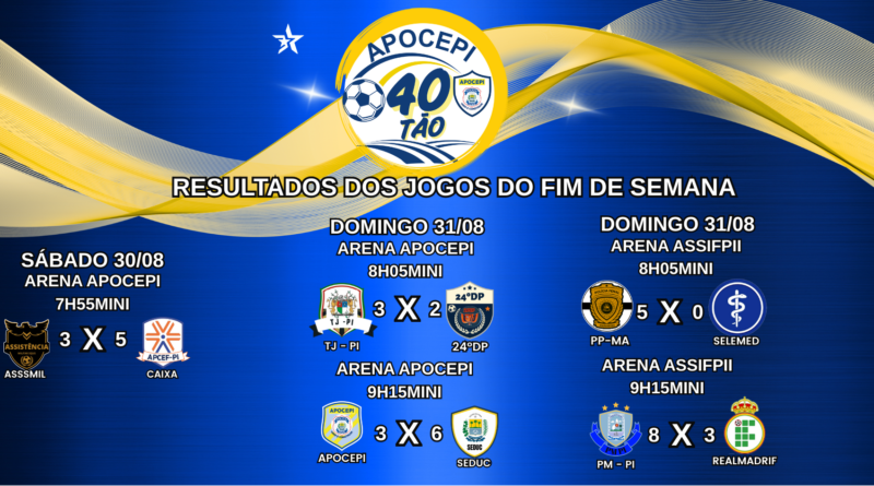 Os jogos complementares da primeira rodada do 40tão Apocepi 2025 agitaram o fim de semana, com partidas realizadas na Arena