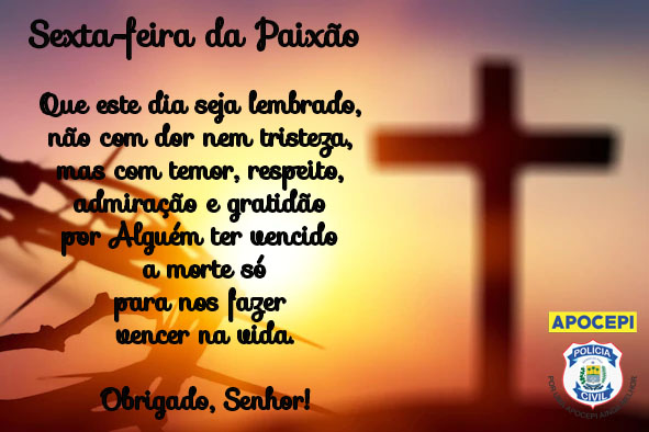 Que a Sexta-feira Santa seja um dia de reflexão e esperança. Lembre-se do sacrifício de Jesus e do amor que Ele tem por nós, ao ponto de dar sua vida para nos salvar.