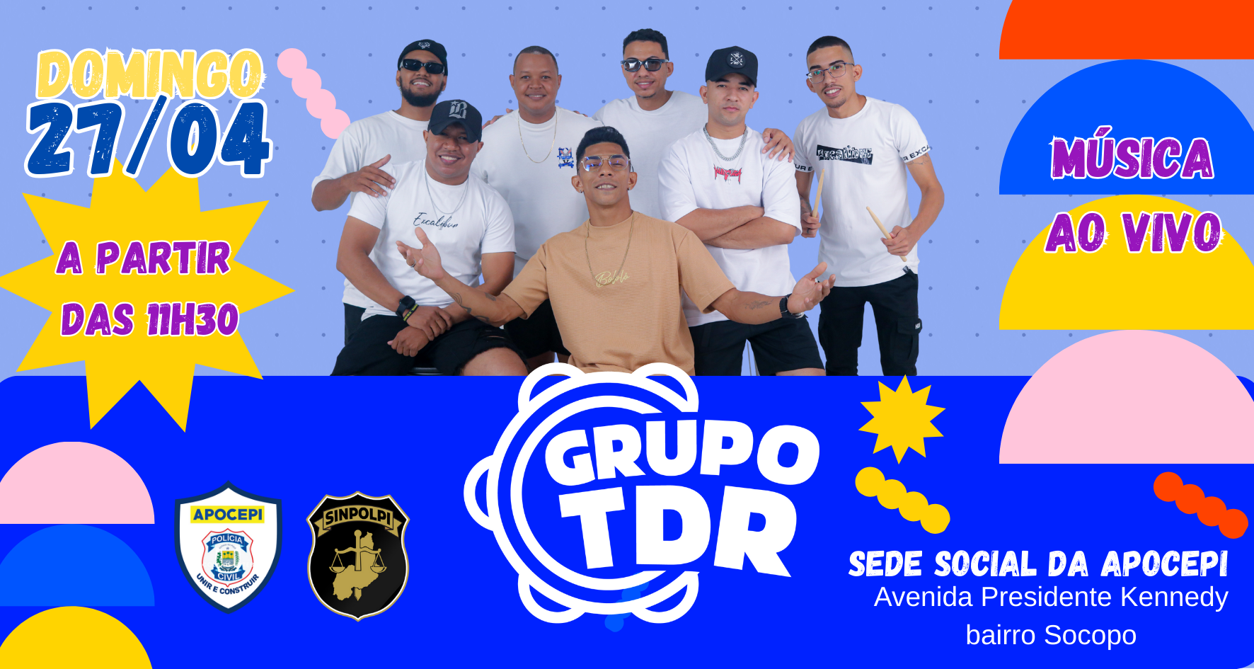 No domingo, dia 27 de abril, a sede social da Apocepi vai vibrar ao som contagiante do Grupo TDR, a partir das 11h30min.